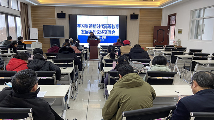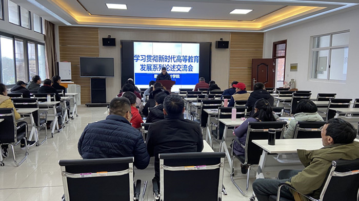 12月16日下午, best365在线官网登录入口在图书馆附楼三楼会议室组织开展《新时代高等教育发展系列论述》学习交流活动,全体教师参加会议,会议由院长汪宏健主持.