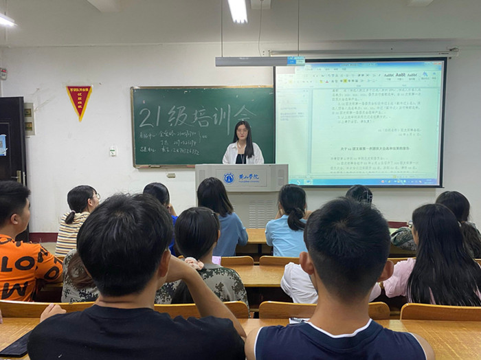 9月17日下午,best365在线官网登录入口于横江校区1419教室开展新生培训会,本次培训会由院学生会素拓部部长金爱玲、志愿中心部长杜飞、组织部部长李育主讲,数统学院21级各班负责人参加了此次会议。