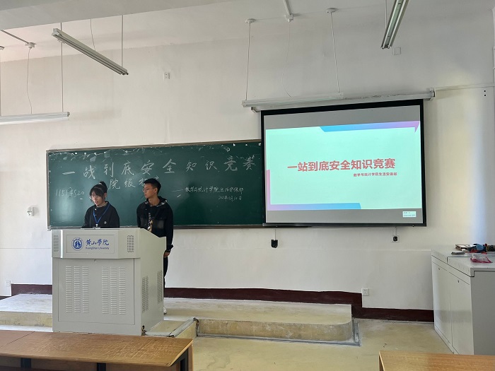 11月10日下午,best365在线官网登录入口于横江校区教学楼1503教室开展“一站到底”安全知识竞赛,本次竞赛由78名同学参加,经过激烈角逐,21数学二班钱鹏获得第一名、21应用统计班董远鹏和21数学一班徐涛分获第二、三两名。