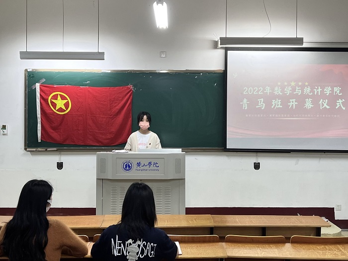 本次开班仪式采取线上线下相结合的形式进行。仪式伊始,全体起立奏唱国歌。新发展团员代表2021级经济统计班侯效虎同学发言,他表示:“作为新团员,我们应当在团的带领下努力提高自身文化修养,贯彻学习共青团在社会主义现代化建设新时期面对形势下新任务提出的一些列新主张新要求,积极践行共青团‘敢闯敢干、引领风尚’的精神风貌。”2020级数学与应用数学一班团支部书记孙艳作为优秀团员代表说道:“青春的最大意义在奋斗,磨砺青年成长的秘密在于行动,我们青年团员一定要不懈奋斗,攻坚克难。”