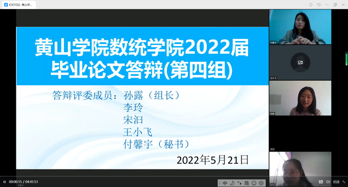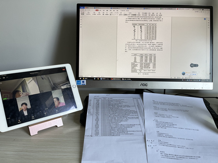 因疫情原因,论文答辩工作采用线上方式进行。学院25名老师组成5个答辩组。在答辩的展示环节,学生对自己的论文进行层次分明、逻辑严谨的陈述。在问答环节,答辩组针对学生的研究方法、数据分析、格式排版等给出了专业的点评和建议。最后,答辩组根据学生的综合表现给出评分。
