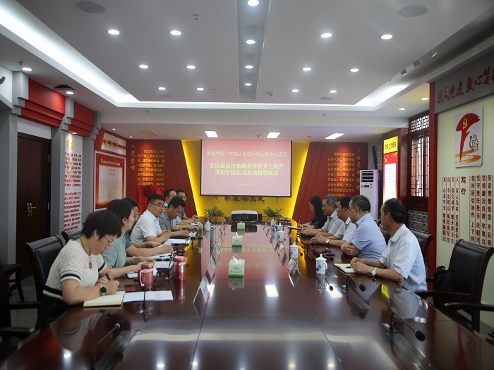 张德学介绍了我校的基本情况,并向中国人民银行黄山市中心支行对我校教学育人工作的支持表示感谢。他指出,我校一直致力于服务地方和企业的发展,此次与中国人民银行黄山市中心支行的合作对我校人才培养、教学科研具有重要意义;是落实培养社会主义建设者和接班人、落实立德树人根本任务的具体举措;校企合作有着很大的发展空间,本次合作是我校与中国人民银行黄山市中心支行合作的良好开端。