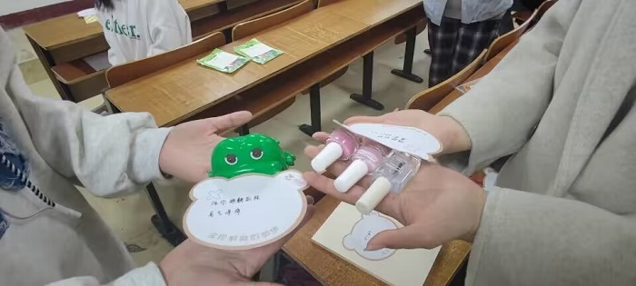 活动中,同学们通过自由分享的方式进行物品交换。参加活动的同学带来了笔记本、杯子、除湿袋、手机支架等,形式多样的物品摆陈、交易流动增添了活动的乐趣。与此同时,同学们还在每件物品上准备了暖心祝福,现场气氛活跃。同学们纷纷表示,通过交换活动得到了各自需要的物品,同时也增加了闲置物品的利用率。活动结束小计,交换闲置物品最多的是王悦同学,共计七件,成功获得了第一名的好成绩。