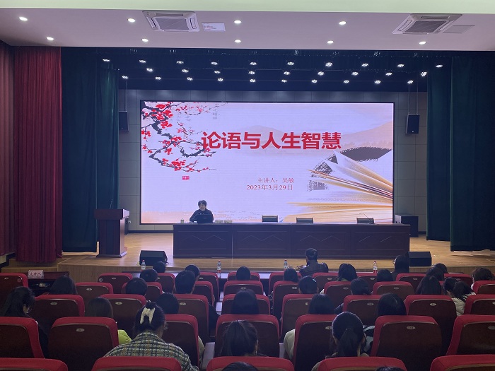3月29日下午,校机关党委书记、组织部正处级组织员吴敏老师应邀来我院作题为“论语与人生智慧”知识讲座。讲座由best365在线官网登录入口党总支书记张爱民主持,best365在线官网登录入口团委书记、全体专职辅导员,2021级、2020级统计班全体学生聆听了讲座。