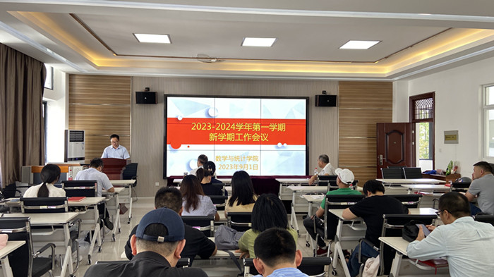 院长汪宏健布置开学前有关准备工作,提出相关要求,他就本学期的重点工作进行了强调,一是要继续高质量完成第五至第八学期教学大纲的修订,要着力加强人才队伍建设,尤其要加大高层次人才引进力度,青年教师要加强科研,提前谋划,积极申报青年基金。