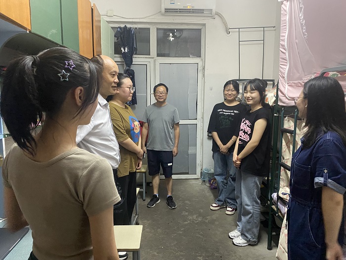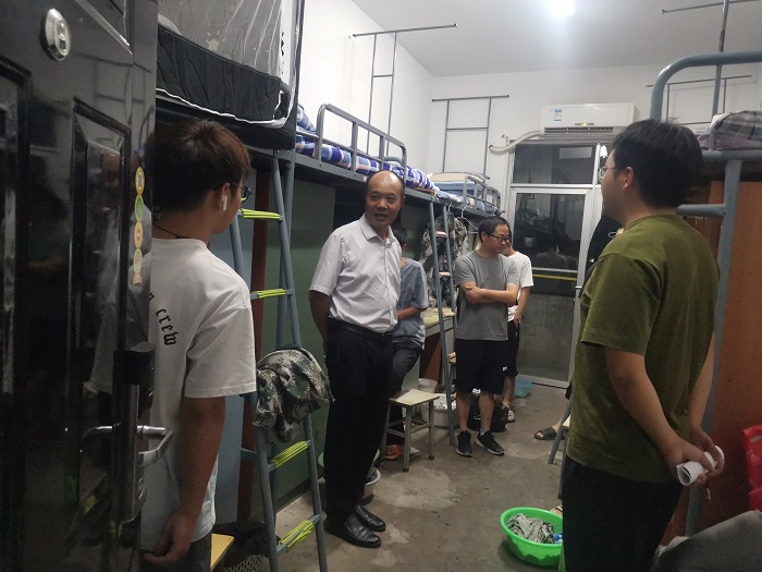 走访过程中,张爱民一行首先对新同学的到来表示热烈欢迎,并就住宿条件、校园环境、寝室关系、适应情况等话题与同学们进行亲切交谈。张爱民特别叮嘱新生在开学初期要提高警惕,注意防范电信网络诈骗,面对老乡会、学长学姐的邀约要注意辨别,有时要保持适当的安全距离,提高自我防范与保护意识。张爱民还勉励同学们要尽快适应大学生活,珍惜宝贵时光,认真学习专业知识,做一名信念坚定、志向远大、乐观向上、积极进取的新时代大学生。同学们也对学院领导、辅导员老师们的关心纷纷表达感谢,表示不会辜负学院领导老师的期望,做到立足新起点、开启新征程,努力成为一名立大志、明大德、担大任的新时代青年。