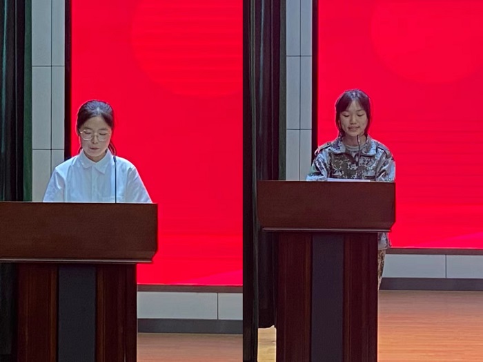 2022级数学与应用数学二班韩雨婷、2023级数学与应用数学一班许悦月分别作为老生代表和新生代表进行发言。