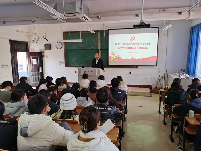 12月22日下午,我院2023年度新党员教育培训开班典礼在横江校区教学楼1402教室举行。全院60名师生新党员(即预备党员和转正未满一年的正式党员)以及部分教工党员参加。院党总支书记、院党总支新党员教育培训工作领导小组组长张爱民主持并讲话,院党总支新党员教育培训工作领导小组其他成员出席。