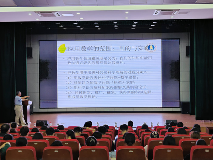 宋永利教授作了《自然界中的生物斑图动力学行为》学术报告,其从大自然的斑图现象开始引入,并从简单的单种群增长模型入手,介绍如何从常微分方程到时滞微分方程到反应扩散方程再到空间记忆扩散模型来建立合适的数学模型描述种群的演化规律,并进一步以贻贝-藻类模型为例详细介绍反应扩散方程的Hopf分支、Turing-Hopf分支的基本理论及其新进展,以及如何建立规范型的定性理论和反应扩散方程的固有时空动力学之间的对应关系。宋教授以数学知识来解释生活中的自然现象,激发同学们学习数学的兴趣和积极性。