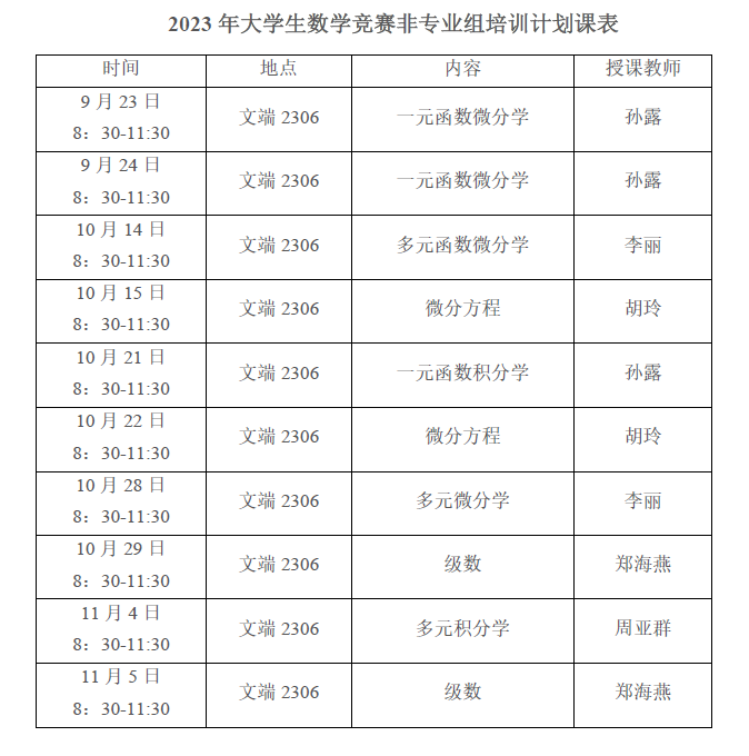 为了激发我校学生学习数学的积极性,培养学生的创新思维,提高学生应用数学知识解决数学问题的能力,推动大学数学教学体系、教学内容和方法的改革,同时配合2023年全国第十五届大学生数学竞赛,best365在线官网登录入口决定举办数学竞赛培训班为全校学生进行免费培训。