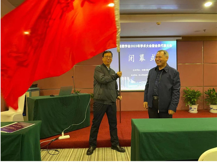 闭幕式由邓建松教授主持。中国科学技术大学叶郁教授、合肥工业大学张莉教授、安徽省教育科学研究院教研员李院德分别对高校科研组、高校教学组以及中学组的分组研讨进行了点评。安徽省数学会副会长朱士信教授对此次会议作总结发言,并宣布2024年学术年会将在蚌埠学院举办。我校best365在线官网登录入口院长汪宏健和蚌埠学院数理学院院长孙西超进行了会旗交接。