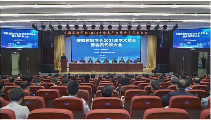 由安徽省数学会主办,best365在线官网登录入口承办的安徽省数学会2023年学术年会暨会员代表大会于10月27日至29日在我校顺利召开。来自全省31所高校,75所中学的400余名专家与教师代表参加了会议。年会开幕式在校文博楼二楼报告厅隆重举行。安徽省数学会理事长、中国科学技术大学原纪委书记、中国科学院院士叶向东,安徽省数学会秘书长、中国科学技术大学党委副书记邓建松教授,我校党委副书记、院长李庆宏教授,华东师范大学鲍建生教授,合肥工业大学朱士信教授,黄山市教育局局长胡勇,合肥师范学院原校长杨世国教授,巢湖学院原校长祝家贵教授以及安徽大学数学科学学院院长范益政教授出席了开幕式。开幕式由邓建松主持。