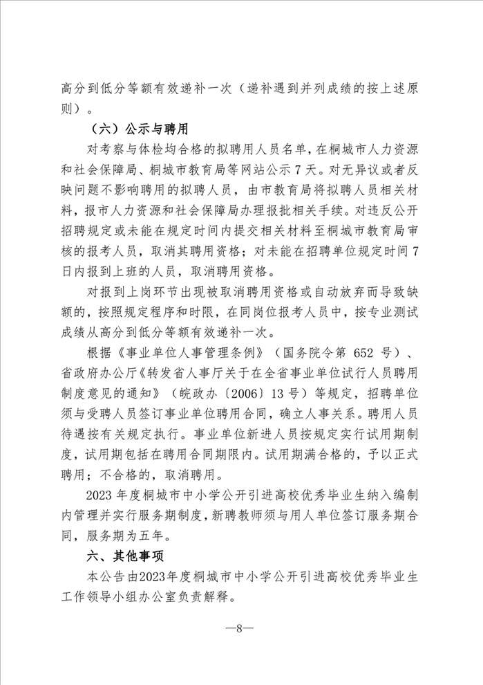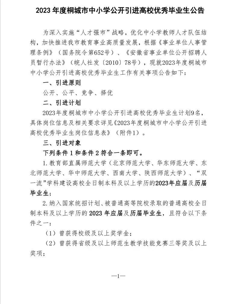 安徽教师招聘|编制!2023年度桐城市中小学公开引进高校优秀毕业生公告