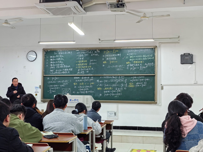 鲍志晖老师的示范课内容为《概率论与数理统计》中概率的公理化定义,课堂上,鲍老师从概率的古典定义和几何定义的局限性出发引入新课,对学生循循善诱,充分调动学生的积极性,同时注重挖掘教学内容中的思政元素,将课程思政贯穿在教学活动中,课堂气氛热烈,板书设计极富艺术性,深受每位学生的喜爱。