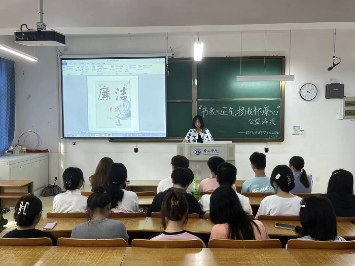 为了进一步推动廉洁文化的传播与普及,构建风清气正的社会环境,5月26日下午,best365在线官网登录入口易班工作站在横江校区教学楼1201教室举办了“书我心正气,扬我怀廉心”活动。此次活动面向学院全体学生,由易班工作站站长李星雨主持负责。