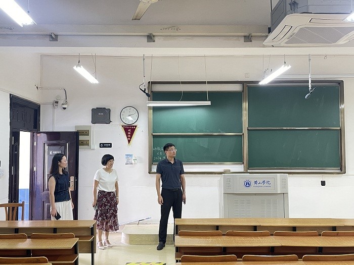 院长胡建伟、副院长梁文娟深入教室、实验实训室实地检查,对教室及实训室的设备运行情况、安全设施、环境卫生等方面进行了逐一排查,为新学期的教学工作提供了有力保障。