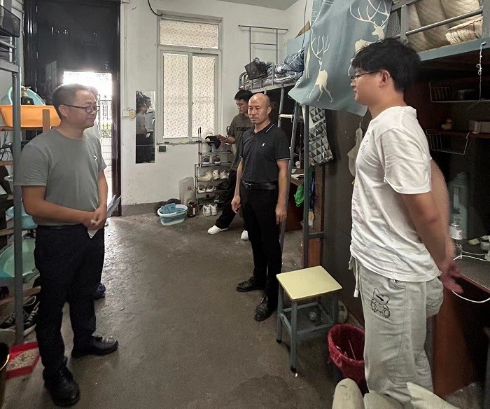 党总支副书记刘双四、副书记方炜深入学生宿舍,了解学生返校情况,对宿舍安全用电、防火防盗、防范电信网络诈骗、宗教传播等方面进行了提醒,同时嘱咐学生及时调整,以积极饱满的状态迎接新学期。