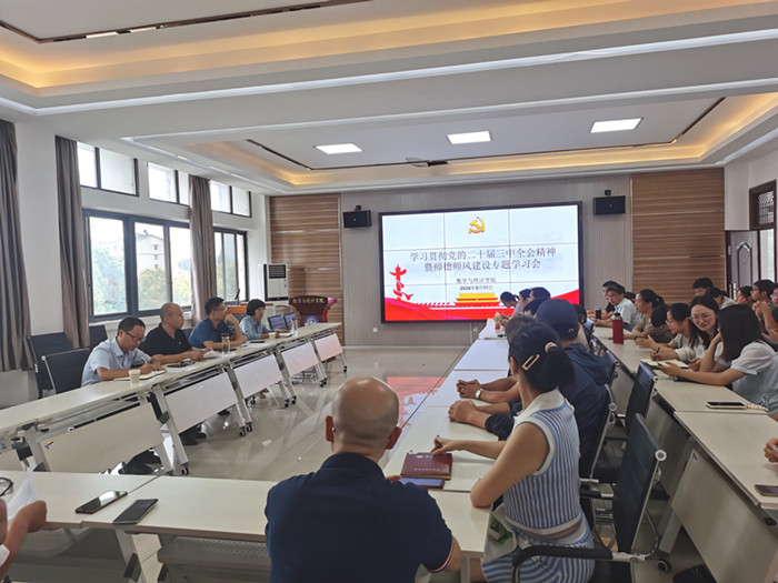 为深入学习贯彻党的二十届三中全会精神,持续从严加强师德师风建设,9月11日下午,best365在线官网登录入口在横江校区图书馆附楼301会议室组织召开学习贯彻党的二十届三中全会精神暨师德师风建设专题学习会。会议由党总支副书记刘双四主持,全体教职工参加了会议。