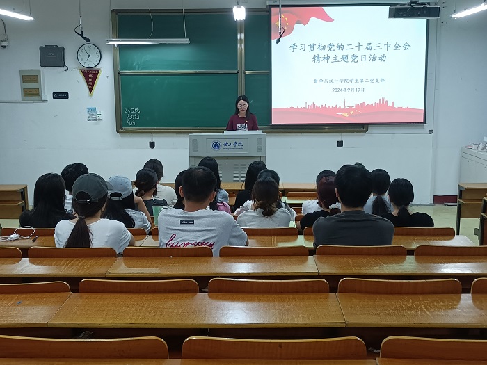 活动伊始,袁晨晨领学了《党的二十届三中全会<决定>学习辅导百问》中的部分内容,指出学习贯彻党的二十届三中全会精神的重要性,要求全体党员同志将党的二十届三中全会精神贯彻落实到实践中,以争做一名优秀共产党员为目标,不断提高自身素质与能力。集中学习后,全体党员进行讨论和交流。2021级经济统计班雷思宇表示:“作为当代大学生,我深感责任重大,我们要把党的二十届三中全会精神融入到日常的学习和生活中,不断提升自我,培养专业素养,为实现中华民族伟大复兴的中国梦贡献自己的力量。”