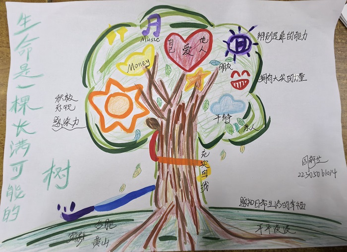 此次活动通过绘画的方式,使参与者将自己意象化为一棵树,对所画的生命树进行探索,不仅可以感知自己内心深处的力量,激发生命的活力,而且可以从与他人所画的"生命树"对比中发现彼此的不同,更好地认识到自我生命的独特价值。