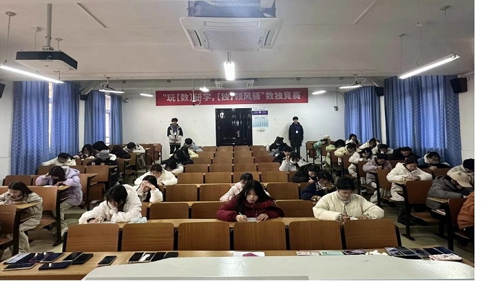 “玩【数】研学,【独】领风骚”数独比赛将校园中众多数独爱好者齐聚一堂,展开一场激烈的智力角逐。比赛现场,选手们全神贯注,冷静思考,在数字的海洋中穿梭,展现出扎实的逻辑思维能力和出色的应变能力,每一步推理都精准无误,竞争激烈而有序,展现了数学学科独特的严谨性和趣味性。