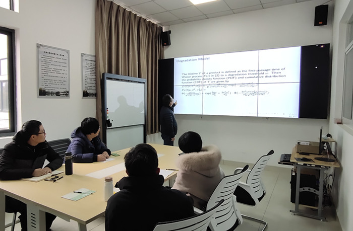 本次报告会主要介绍了基于维纳过程评价产品可靠性的方法,主要从模型选择、评价方法等方面进行了介绍。据悉,为加强教师间的科研交流,提升教师科研能力与质量,数统学院将积极搭建科研平台,定期举办科研交流报告会。